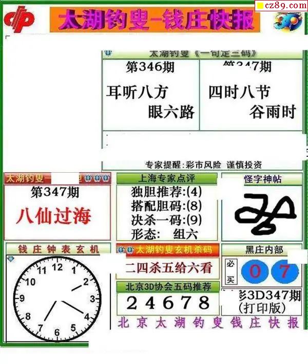 钱庄快报2025347期3d图谜