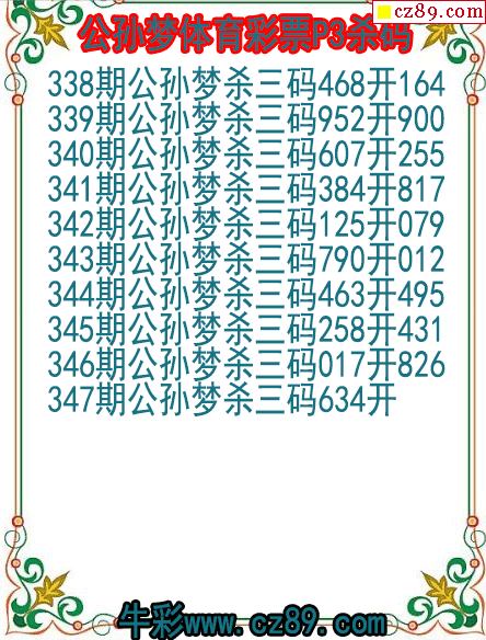 25年347期公孙梦体育彩票P3杀码图