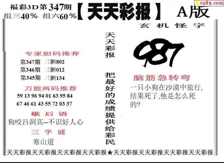 福彩3D2025347期天天彩报A版 天天彩报B版