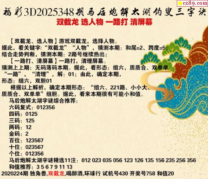 马后炮解25年348期3d太湖钓叟之 清屏幕