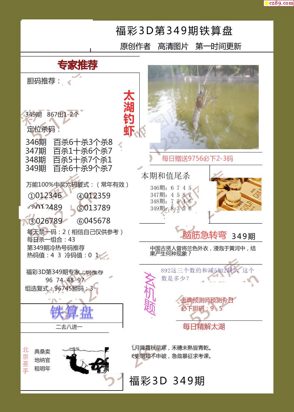 25年349期福彩铁算盘3d画谜