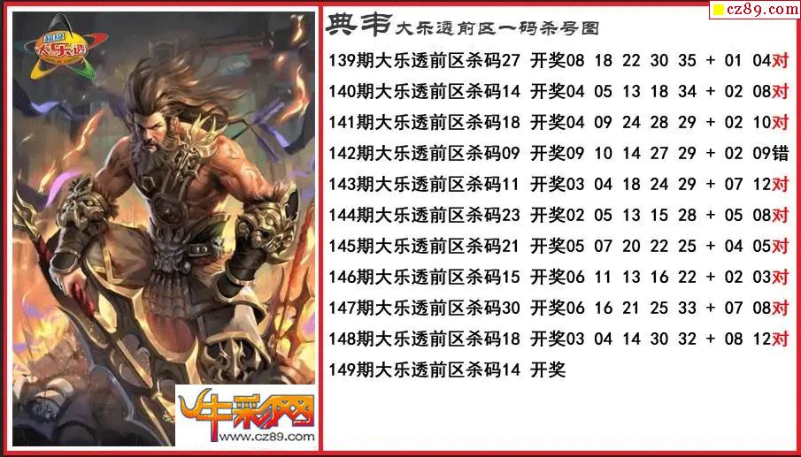 大乐透149期典韦前区一码杀号图