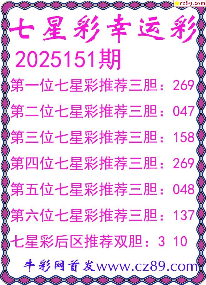 2025年151期 牛彩版七星彩专家预测总汇分享