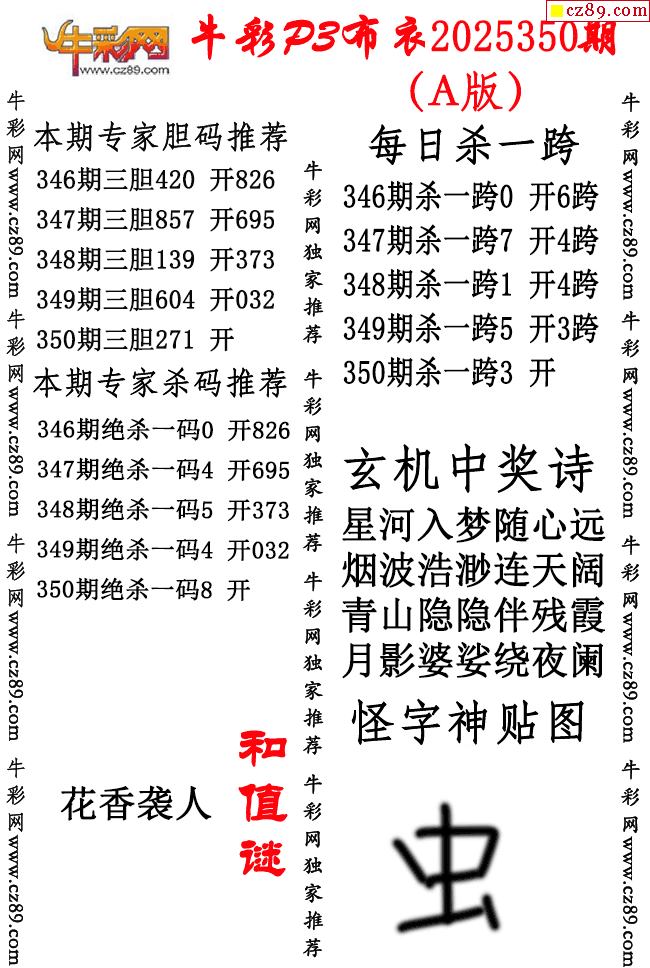 牛彩P3布衣25年350期AB版图谜(精华版)
