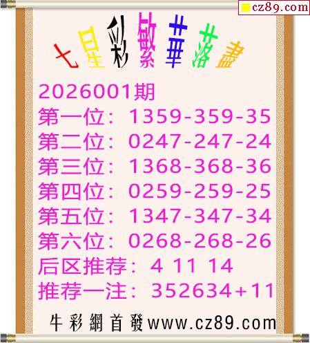 2026年001期七星彩 众彩推荐四位定胆