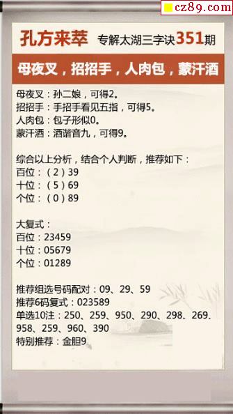 25年351期牛彩版解太湖钓叟三字诀今日汇总