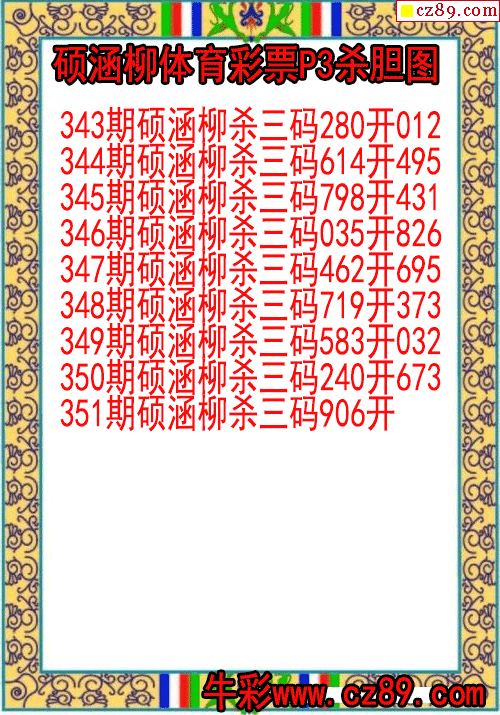 25年351期硕涵柳体育彩票P3杀胆图