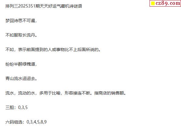 2025年藏机图351期 正版体彩P3藏机图诗汇总