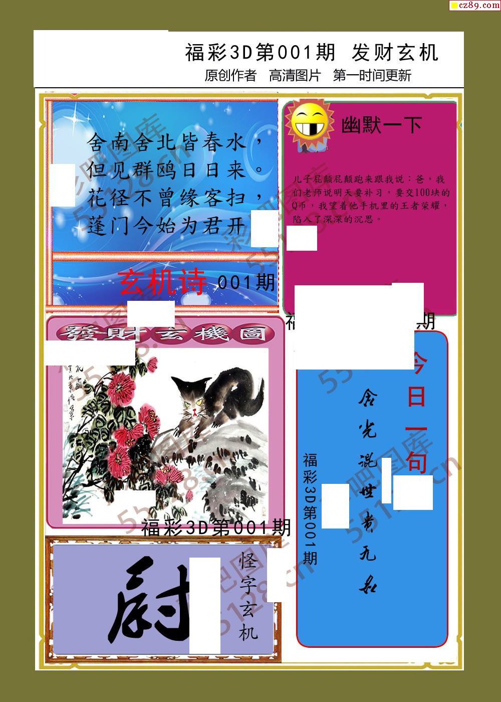 发财玄机26年001期福彩3d画谜