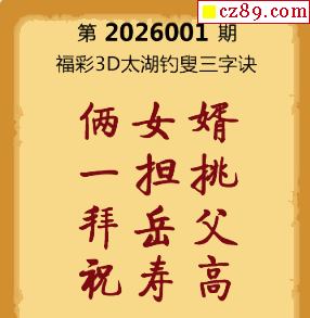 26年001期3d字谜太湖钓叟三字诀《保真》