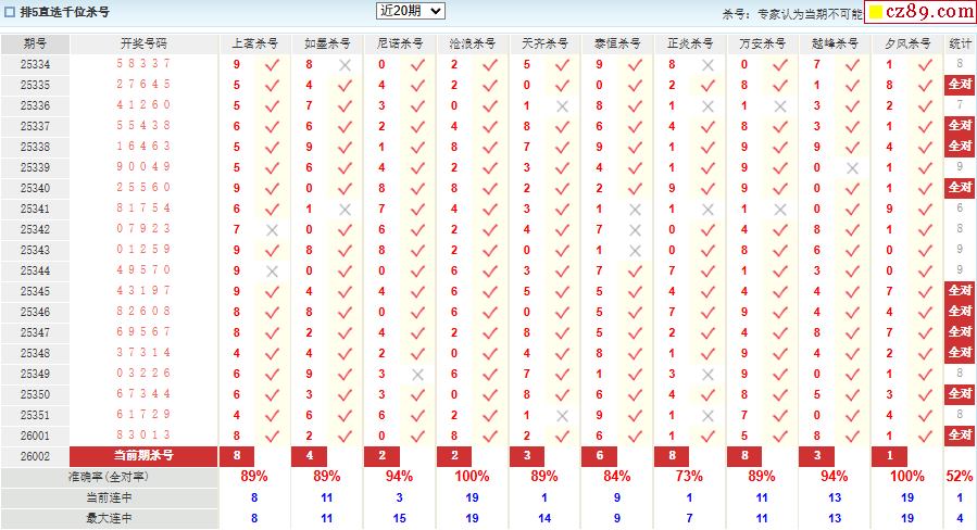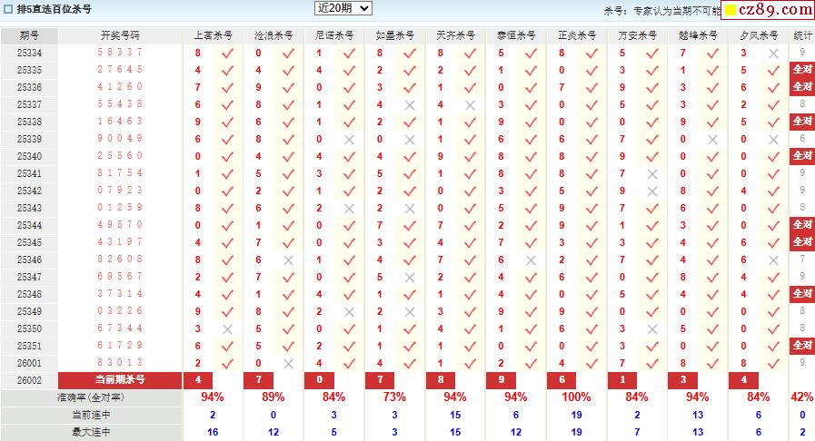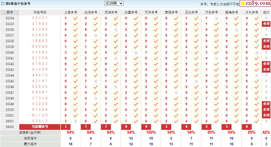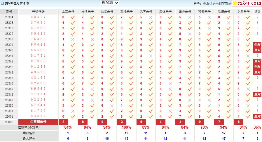 002期彩票专家体彩P5杀号推荐图表