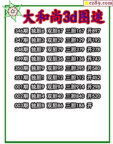 大和尚三胆2026003期3d图谜(原创)