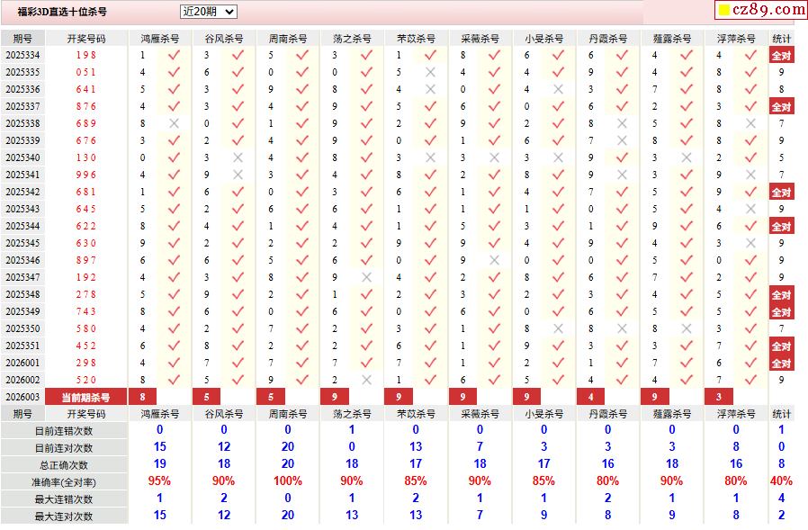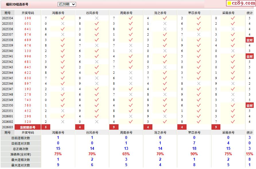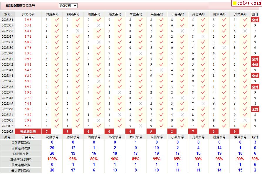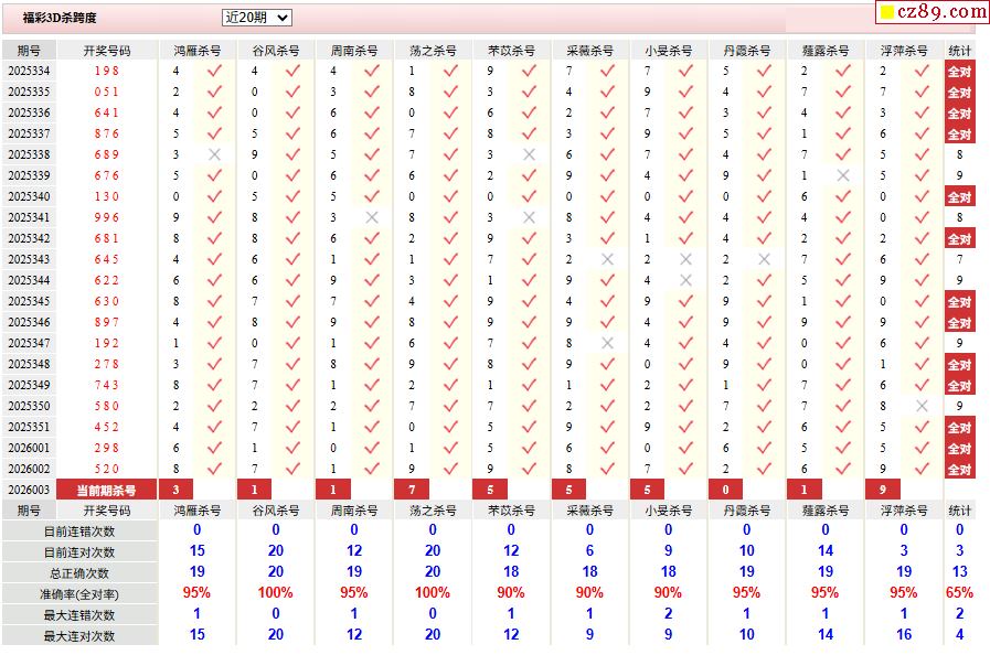 26年003期彩宝贝专家福彩3D杀号定码图表