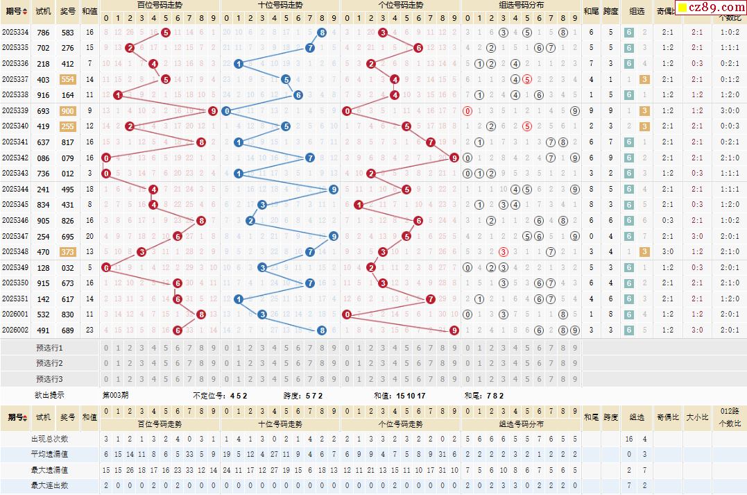 26年003期彩宝贝专家体彩P3杀号定码图表