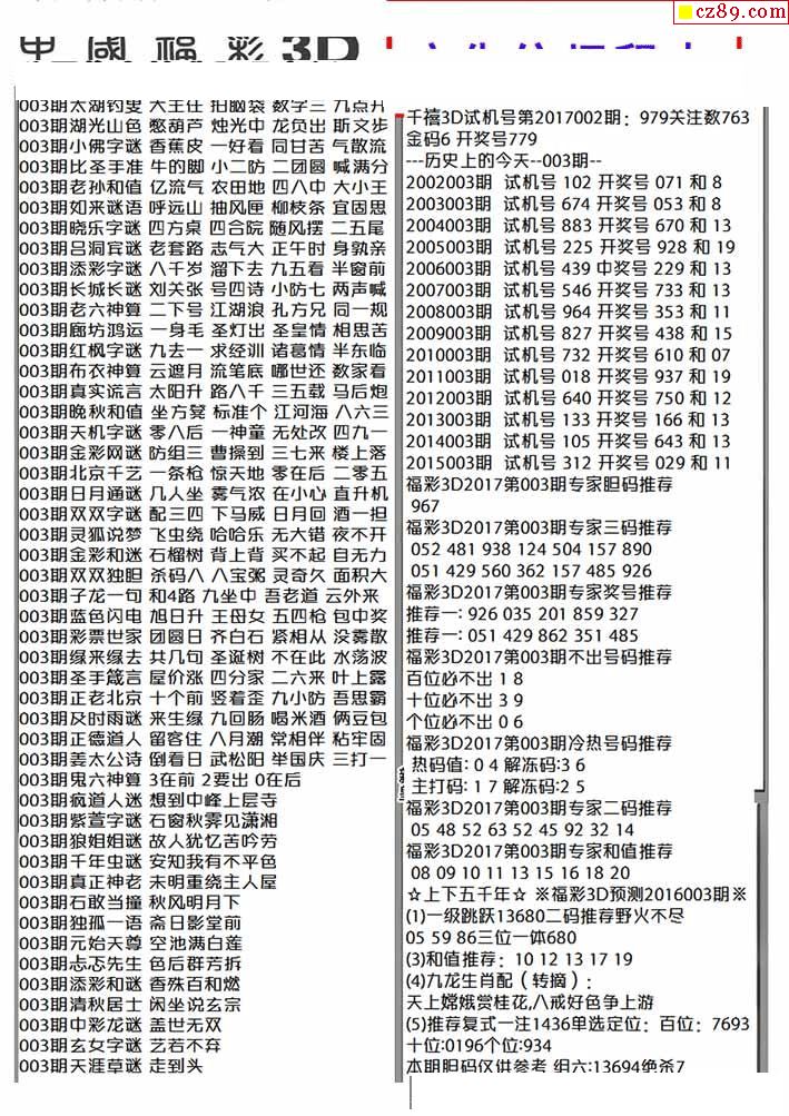 2026007期3D图谜汇总(二)