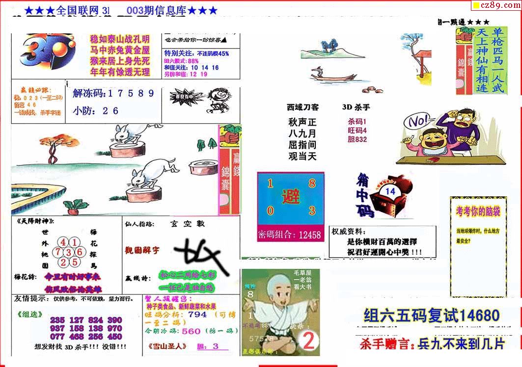 杀手+鑫马快报+字迷汇总26年003期3d图谜
