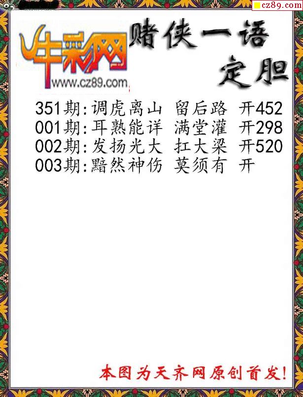 福彩3D2026003期彩赌侠一句定三码字图谜