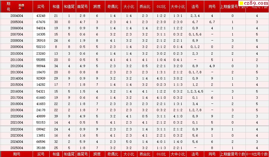 第004期体彩P5历史同期对比