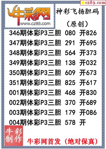 神彩飞扬三胆004期体彩P3图谜(原创)