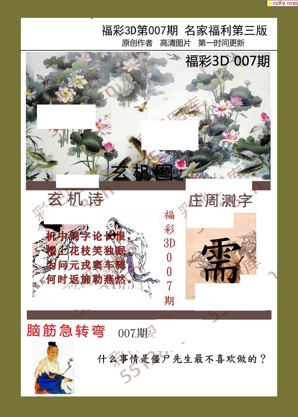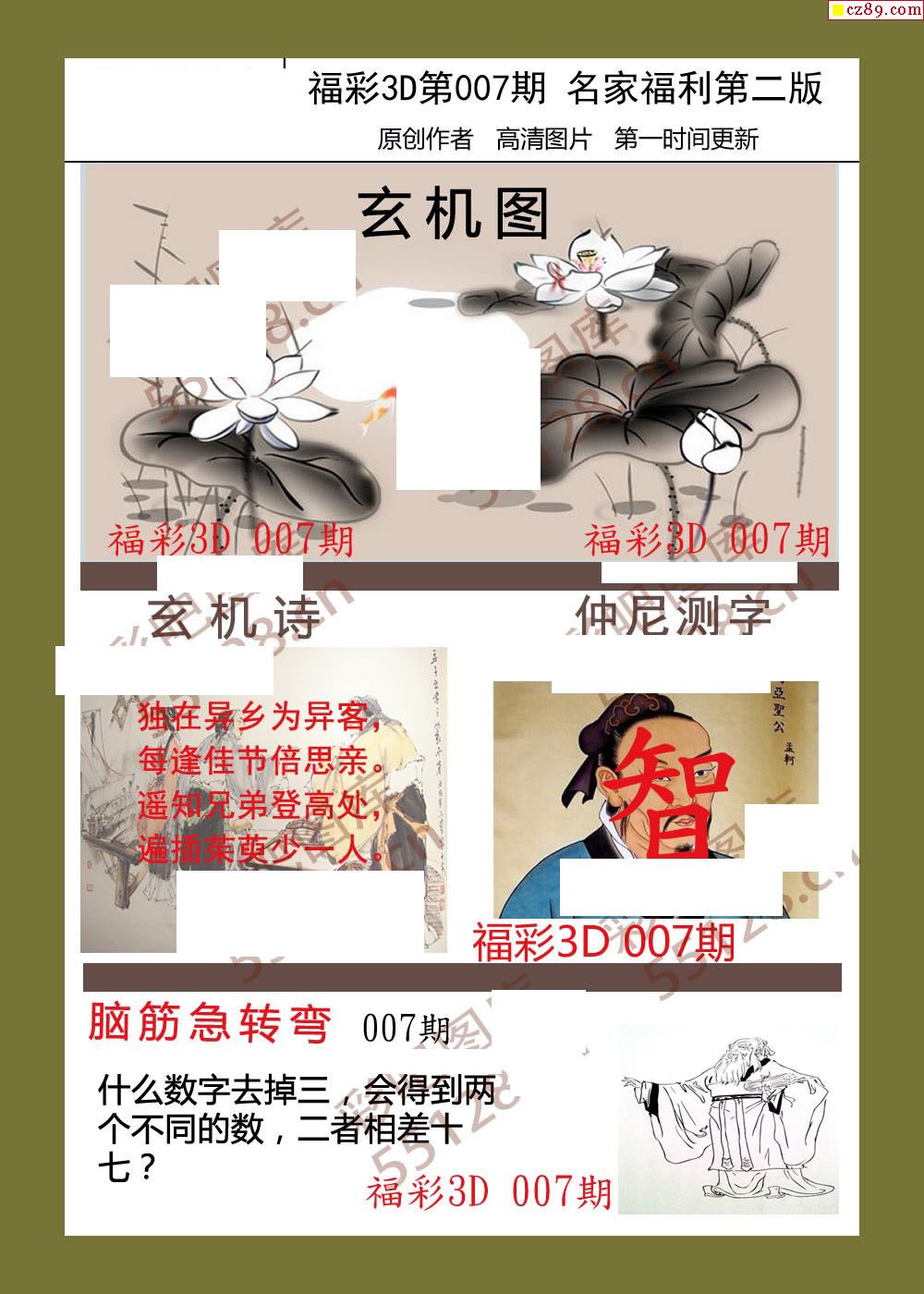 福彩名家福利彩票3d26年007期图谜