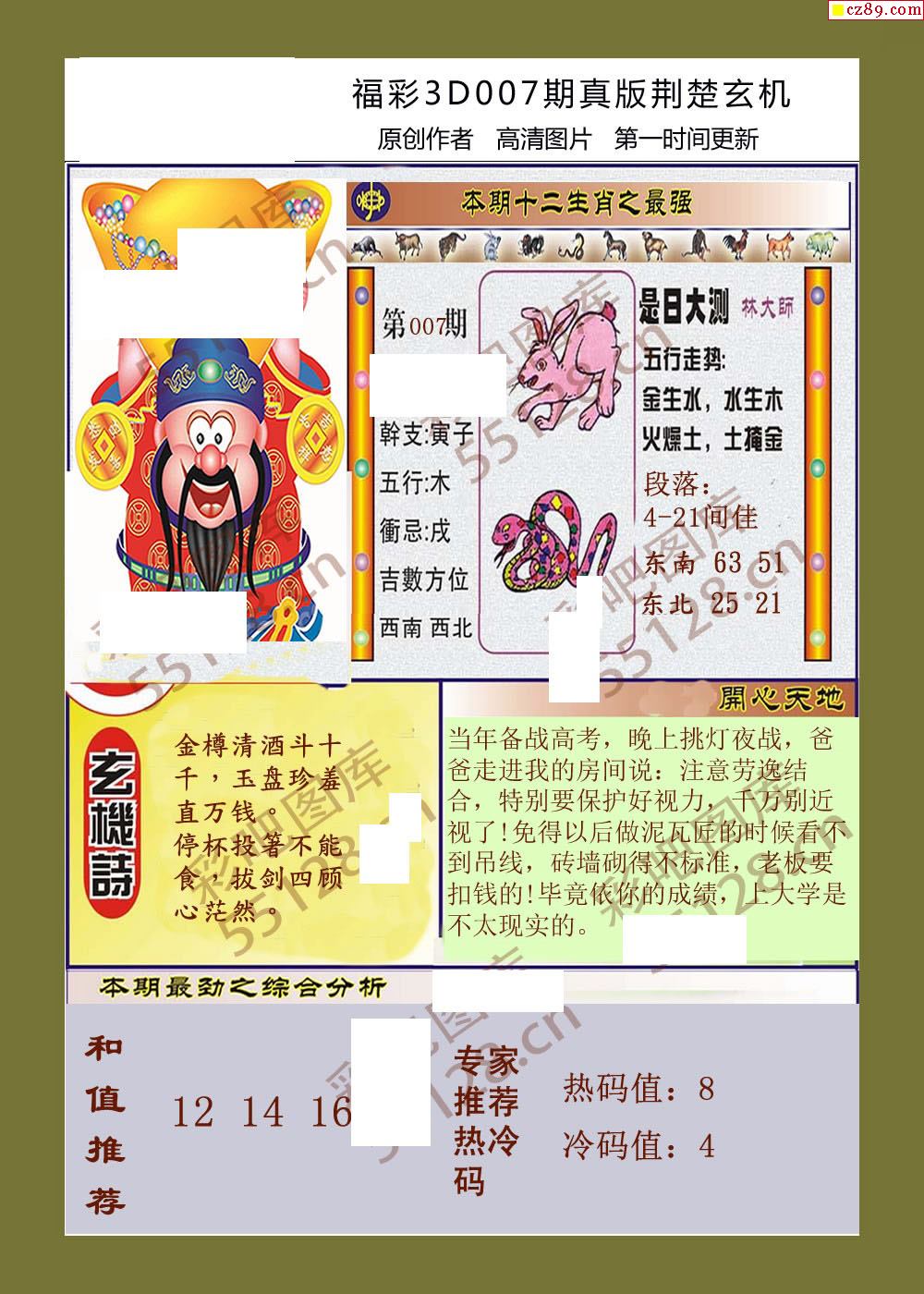 26福彩3d007期真版荆楚玄机彩报