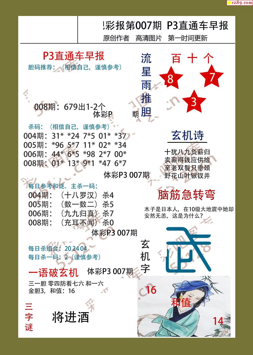 2026年009期牛彩网体彩P3画迷图谜汇总分享