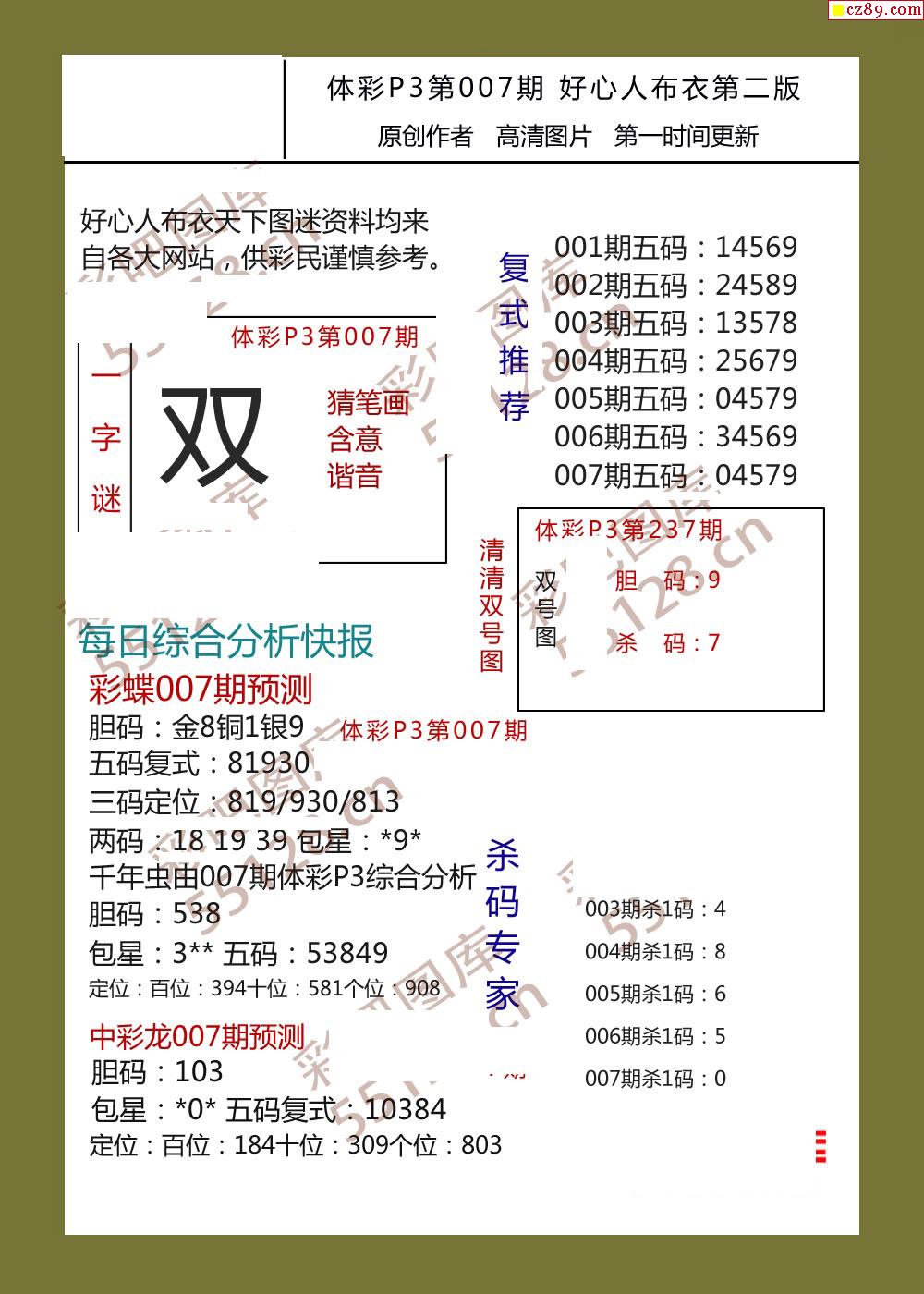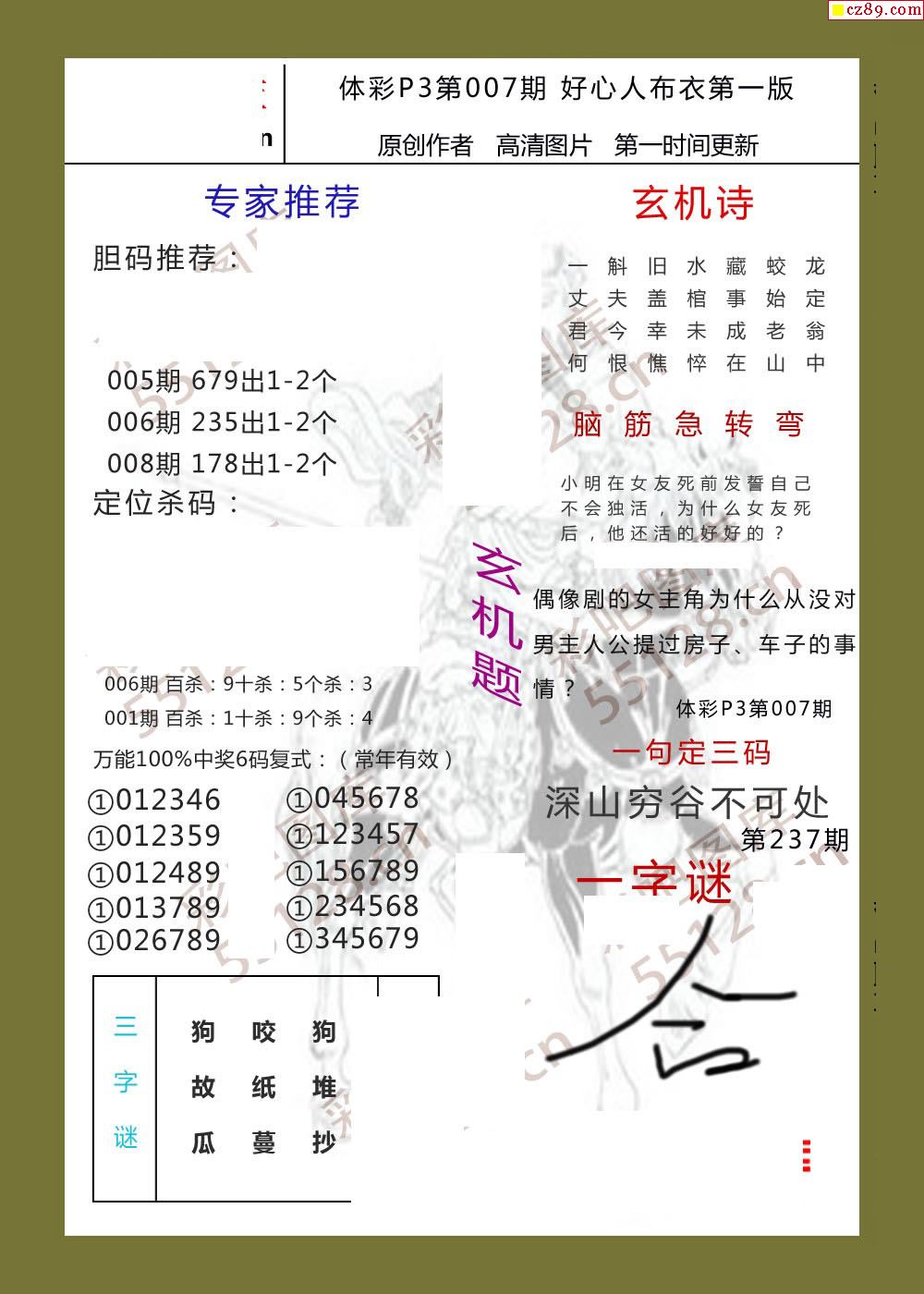 好心人布衣AB版007期体彩p3图谜
