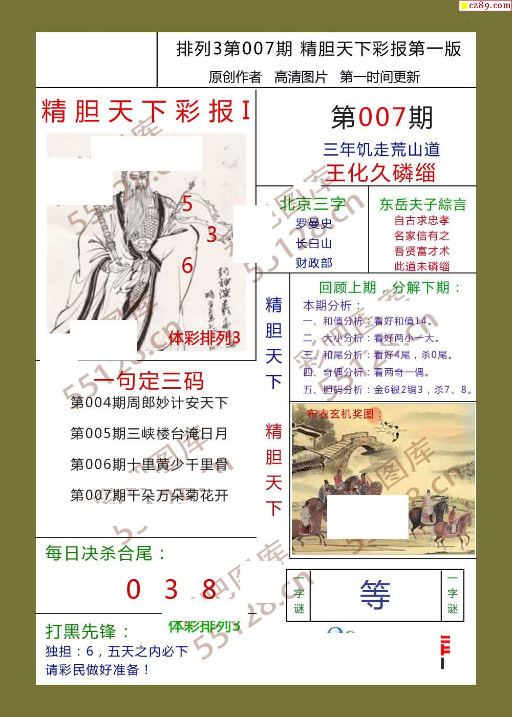 精胆天下彩报007期体彩p3图谜
