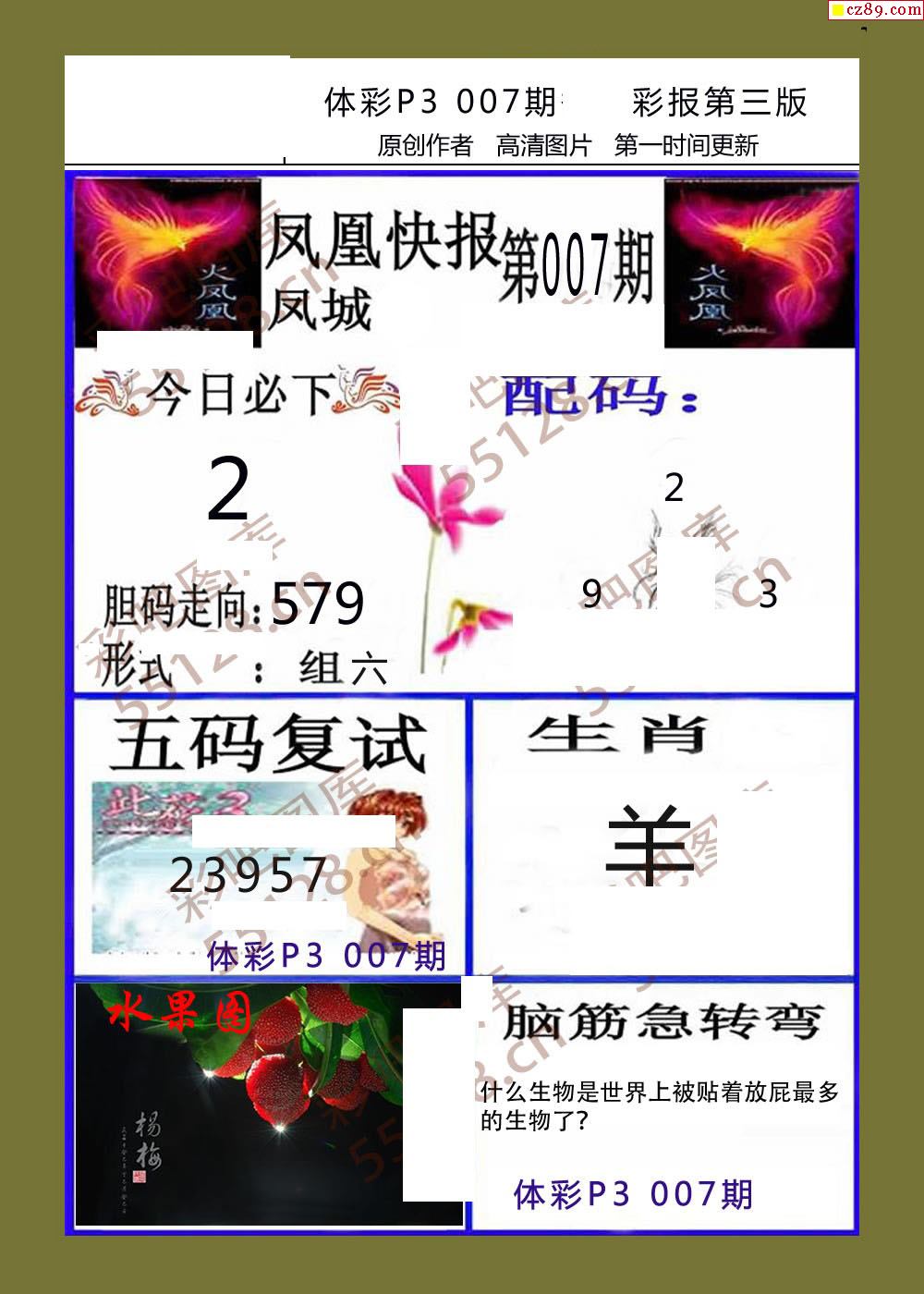 香岛快报007期体彩p3图谜