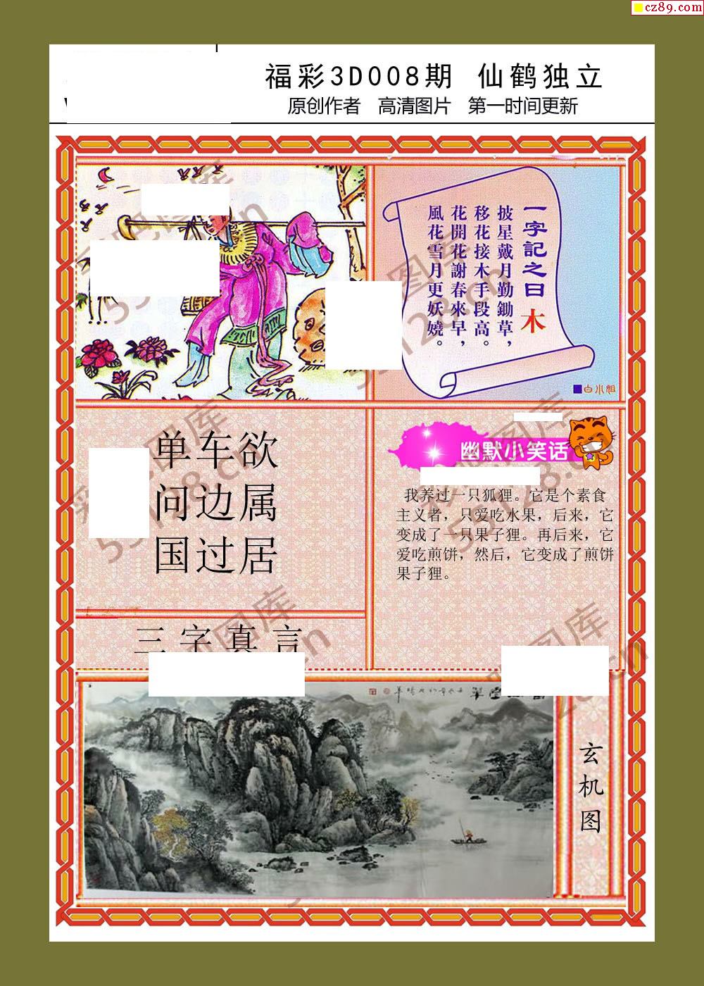 密图玄机008期福彩3d字画谜