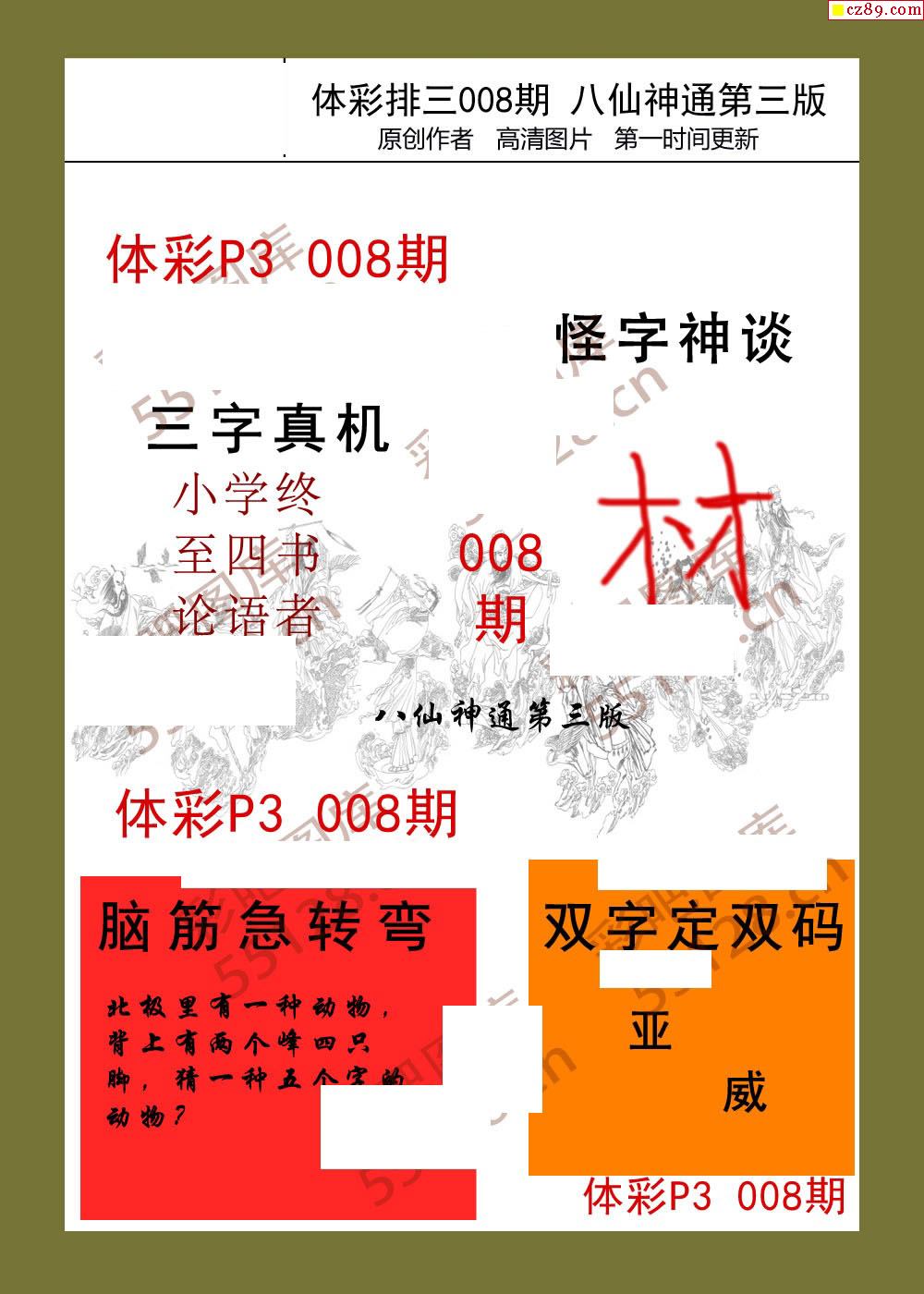 八仙神通系列008期体彩p3图迷