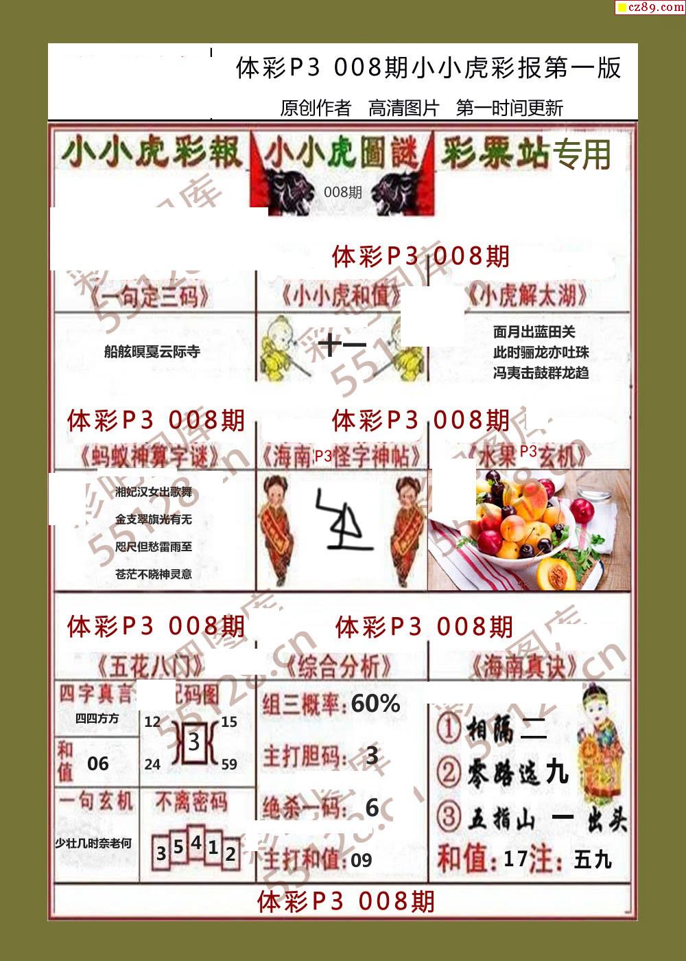 小小虎彩报008期体彩p3图谜