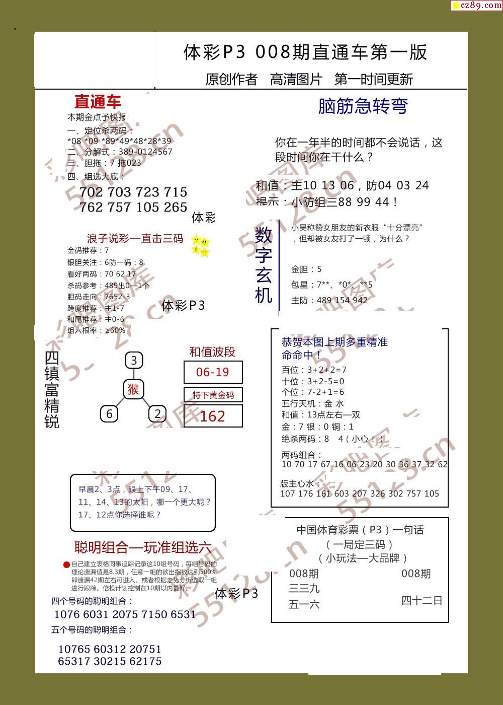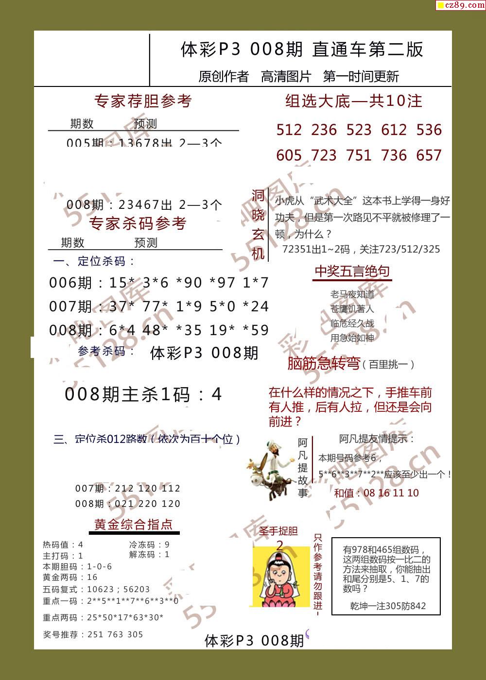直通车AB版008期体彩p3图谜