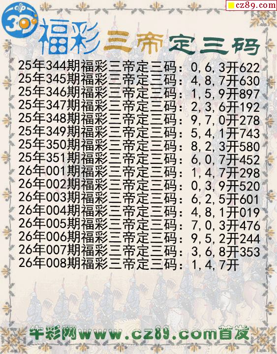 福彩三帝定三码008期3d图谜