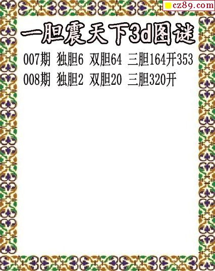 一胆震天下独胆2026008期3d图谜(原创)
