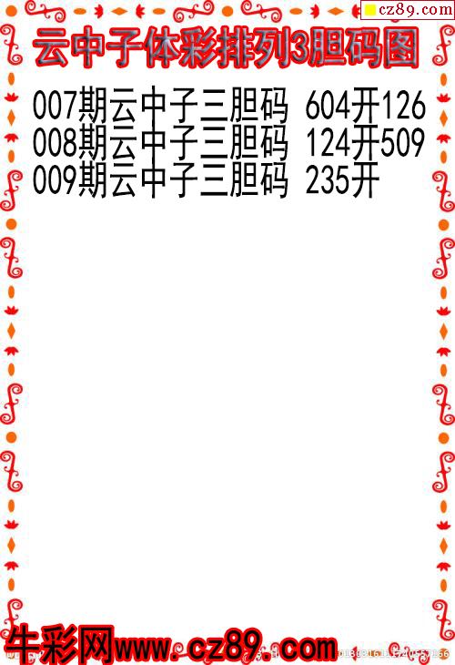 26年009期云中子体彩排列3胆码图