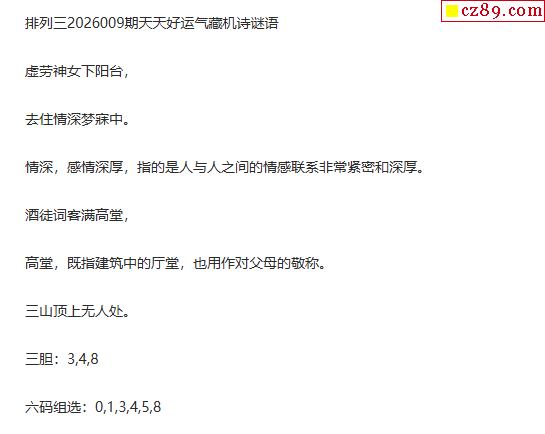 体彩排三2026年011期 武当玉女掌门一句定三码