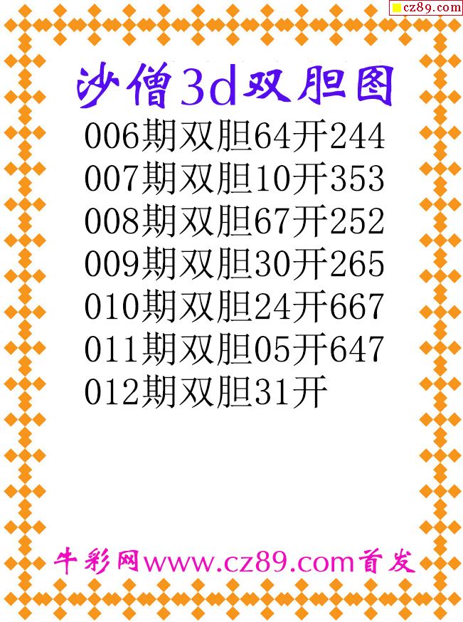 沙僧双胆26012期3d原创图谜