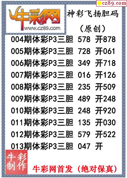 海城胆神心跳一码013期体彩P3图谜