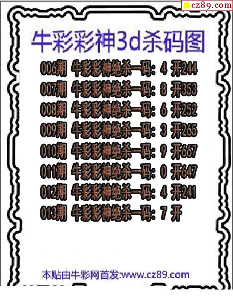 牛彩彩神杀码2026013期3d图谜(原创)