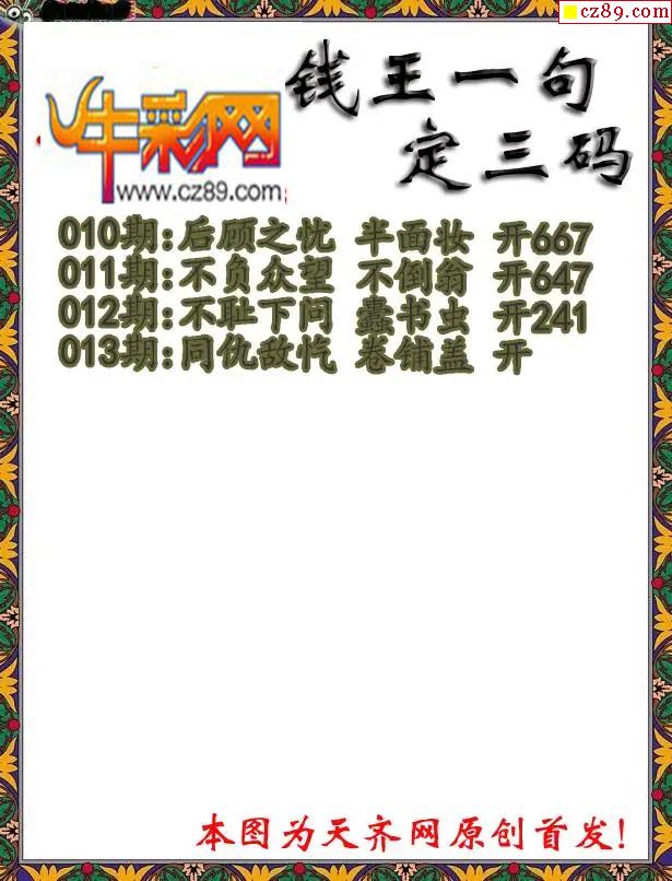 福彩3D2026013期彩赌侠一句定三码字图谜