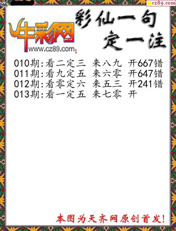 2026013期牛彩一句定三码