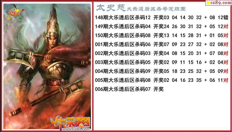 大乐透006期太史慈后区杀号定胆图