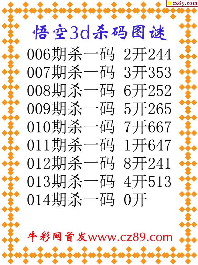 牛彩狙击手杀码2026014期3d图谜(原创)
