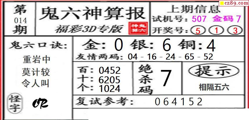 鬼六神算2026014期3d图谜