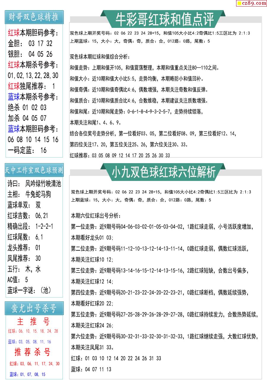 26年006期双色球彩票指南【牛彩版】