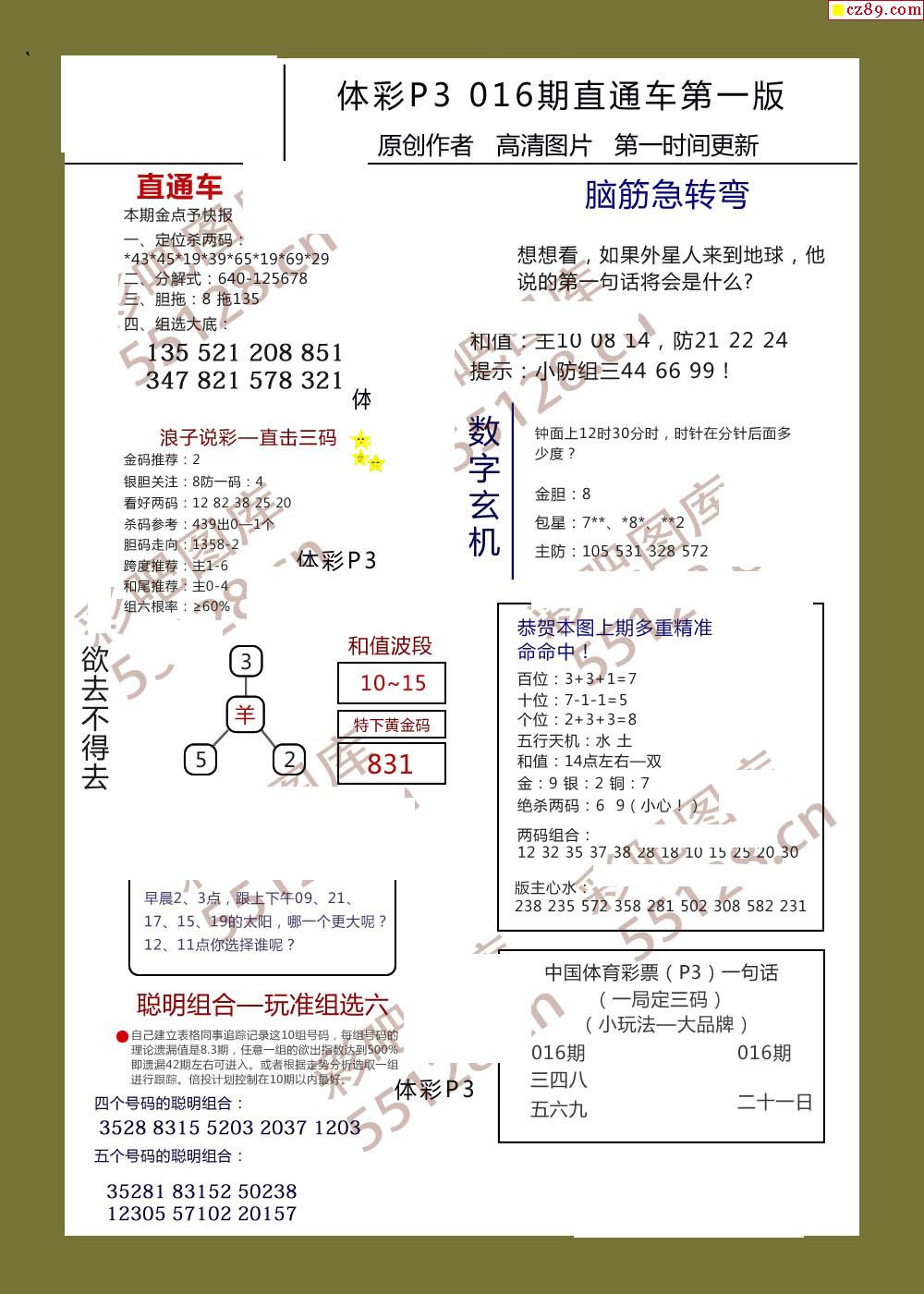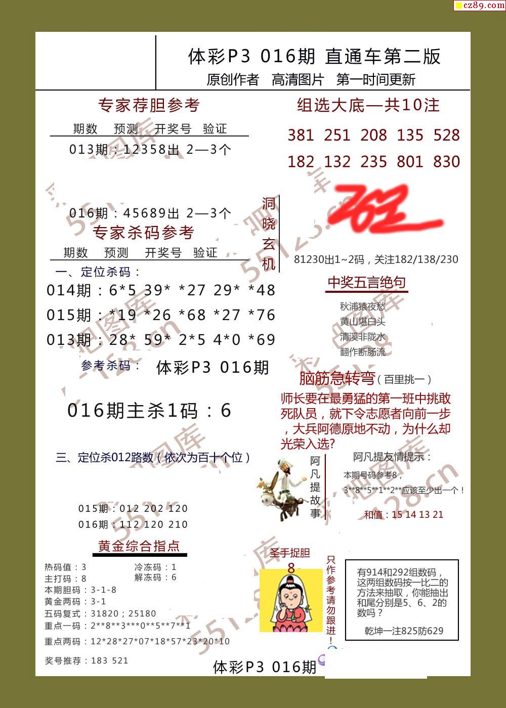 直通车AB版016期体彩p3图谜