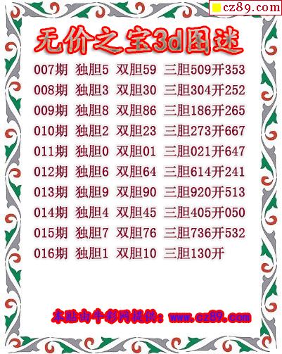 无价之宝送胆2026016期3d图谜(原创)