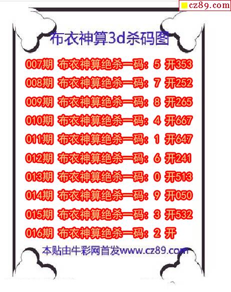 布衣神算杀码2026016期3d图谜(原创)