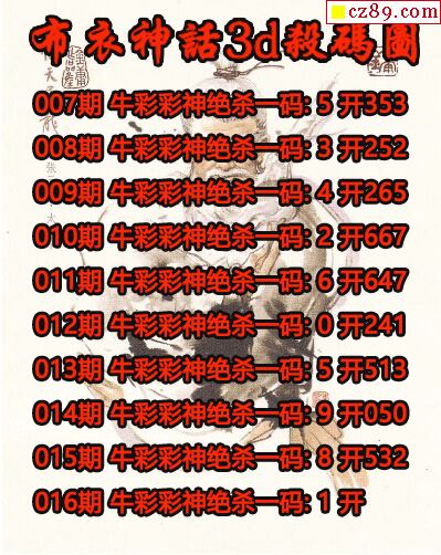 布衣神话杀码2026016期3d图谜(原创)
